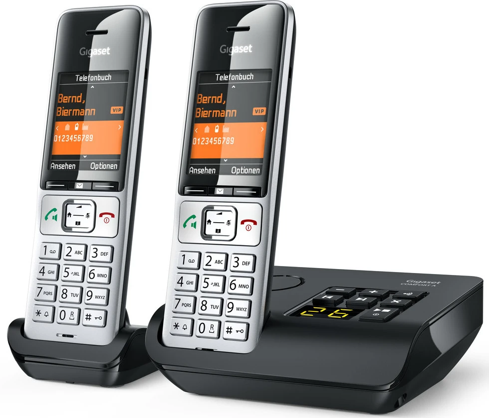 Mit dem Gigaset COMFORT 500A IP flex lassen sich bis zu sechs IP-basierte Rufnummern verwalten – und das von mehreren Providern. Sie können den Rufnummern bis zu sechs anmeldbare Mobilteile und drei Anrufbeantworter zuweisen. Klingt aufwändig? Ist es aber nicht: Als Nutzer geben Sie nur Ihre Rufnummer ein. Aber auch wenn Sie das Gigaset COMFORT 500A IP flex im „nicht IP-basierten“ Betrieb nutzen wollen: Mit diesem Telefonsystem inklusive Anrufbeantworter ist auch an analogen Anschlüssen Telefonkomfort garantiert.