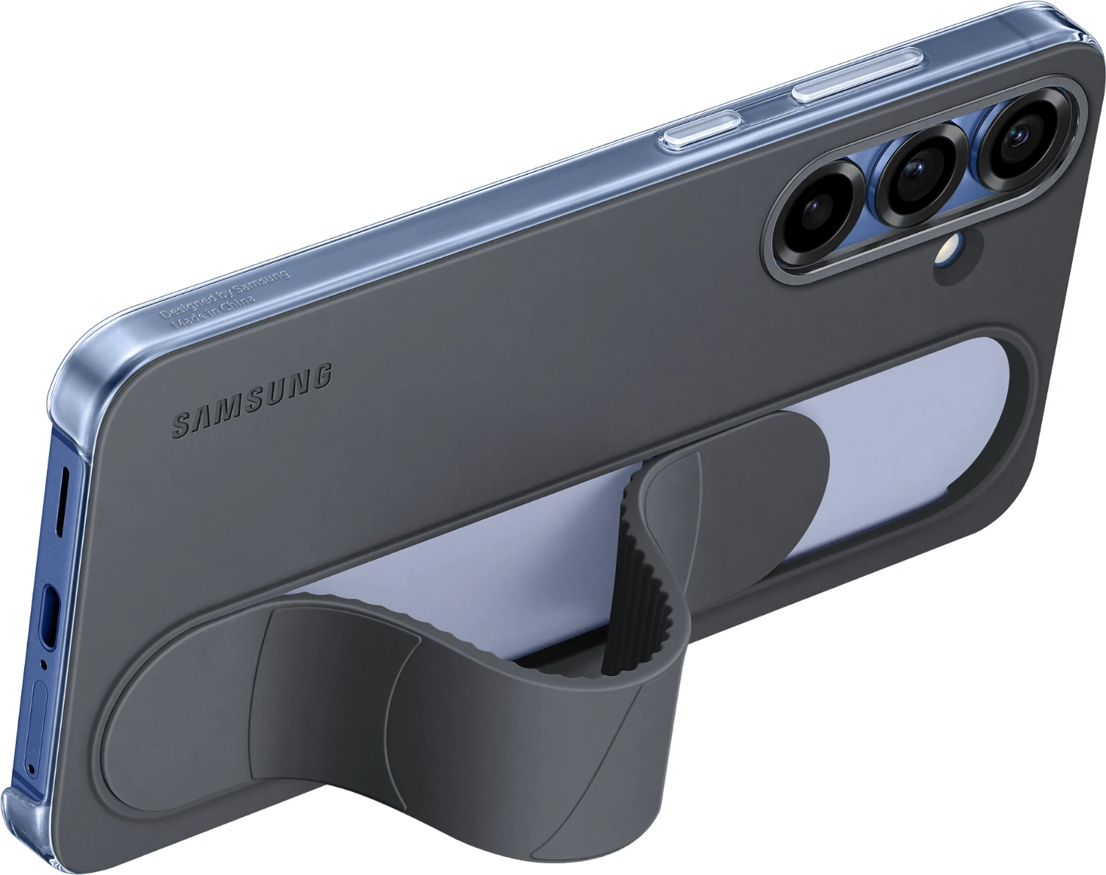 Mit dem Standing Grip Case liegt dein Galaxy S25 | S25+ | S25 Ultra komfortabel und durch das Band zudem sicher in der Hand. Willst du bequem Videos oder Fotos betrachten, kannst du das Band herunterdrücken bis es fixiert ist und so dein Galaxy Smartphone aufstellen und die Inhalte unbeschwert genießen. Das Material überzeugt mit einer weichen Textur, die sich großartig anfühlt. Das Standing Grip Case sieht nicht nur stylisch aus, sondern bietet auch Schutz vor Kratzern und bei Stößen – sowohl für